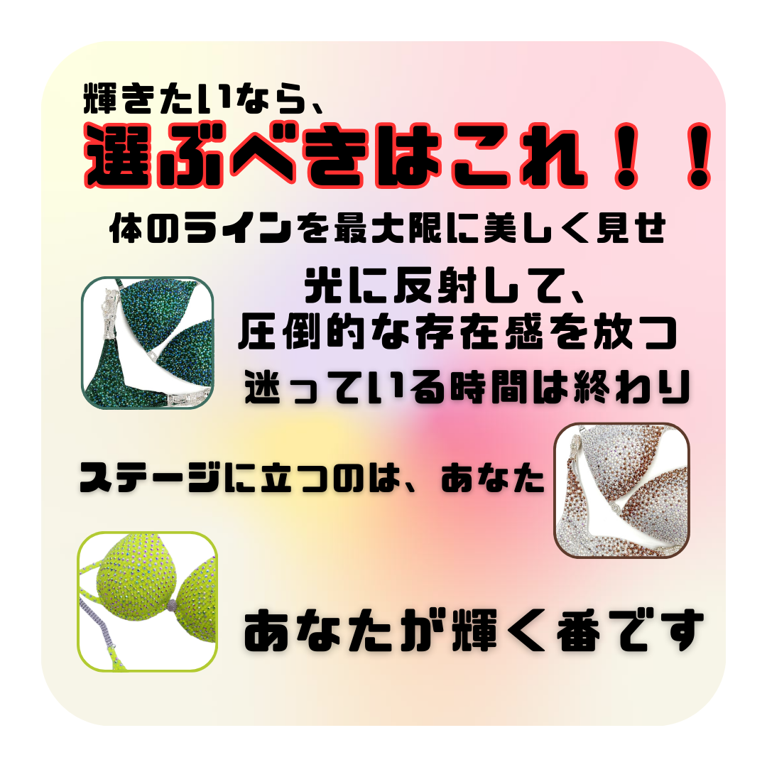 Real Queens のビキニは大量生産にはない特別な一着です。熟練の職人が一点ずつ仕上げることで、他にはない存在感と舞台でのオーラを引き出します。